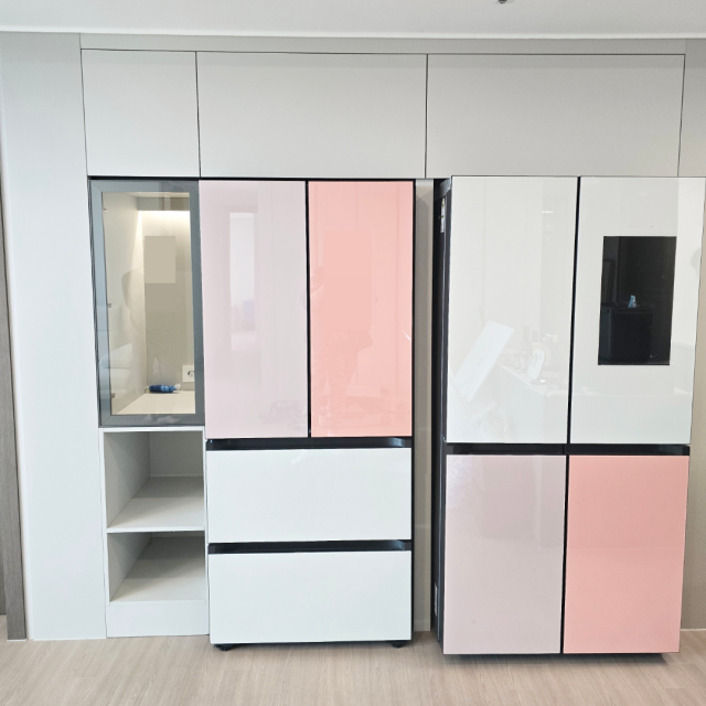 프리스탠딩 냉장고장 리폼 유리장식장+오픈장
